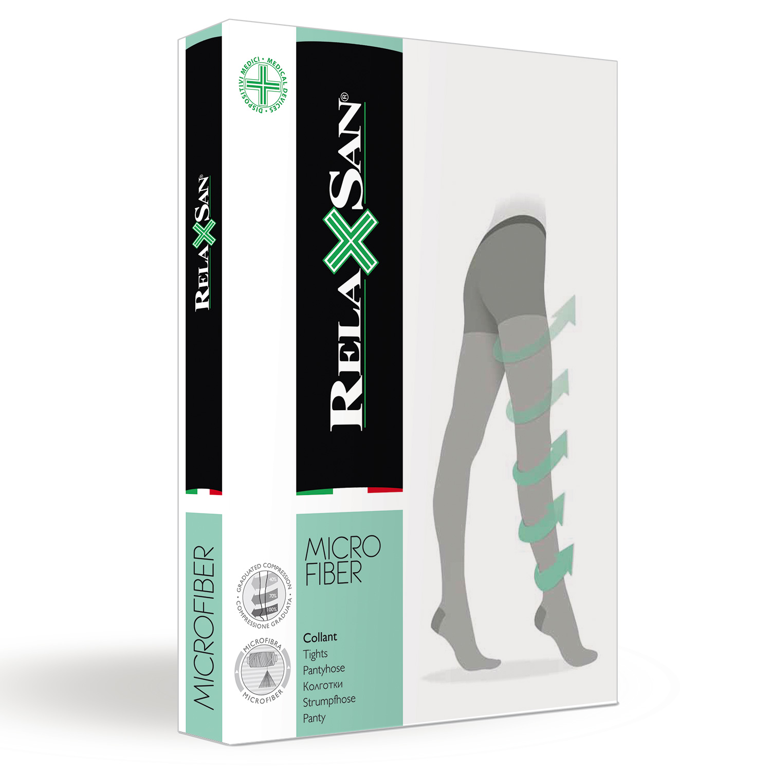 Pėdkelnės RelaxSan fiziologiškai taisyklingai apspaudžia koją (didžiausias apspaudimas ties čiurna, kuris laipsniškai mažėja link viršaus), tokiu būdu padeda aktyvinti kraujotaką, mažinti kojų nuovargį ir tinimą.