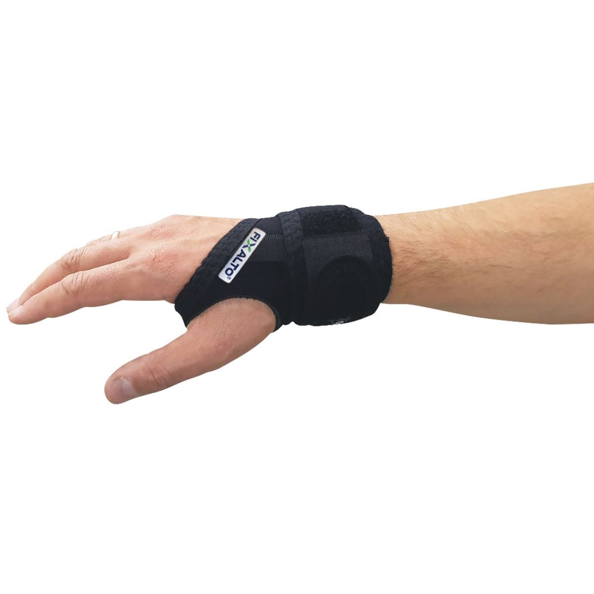 Riešo įtvaras yra universalaus dydžio. Kairė arba dešinė pusė.