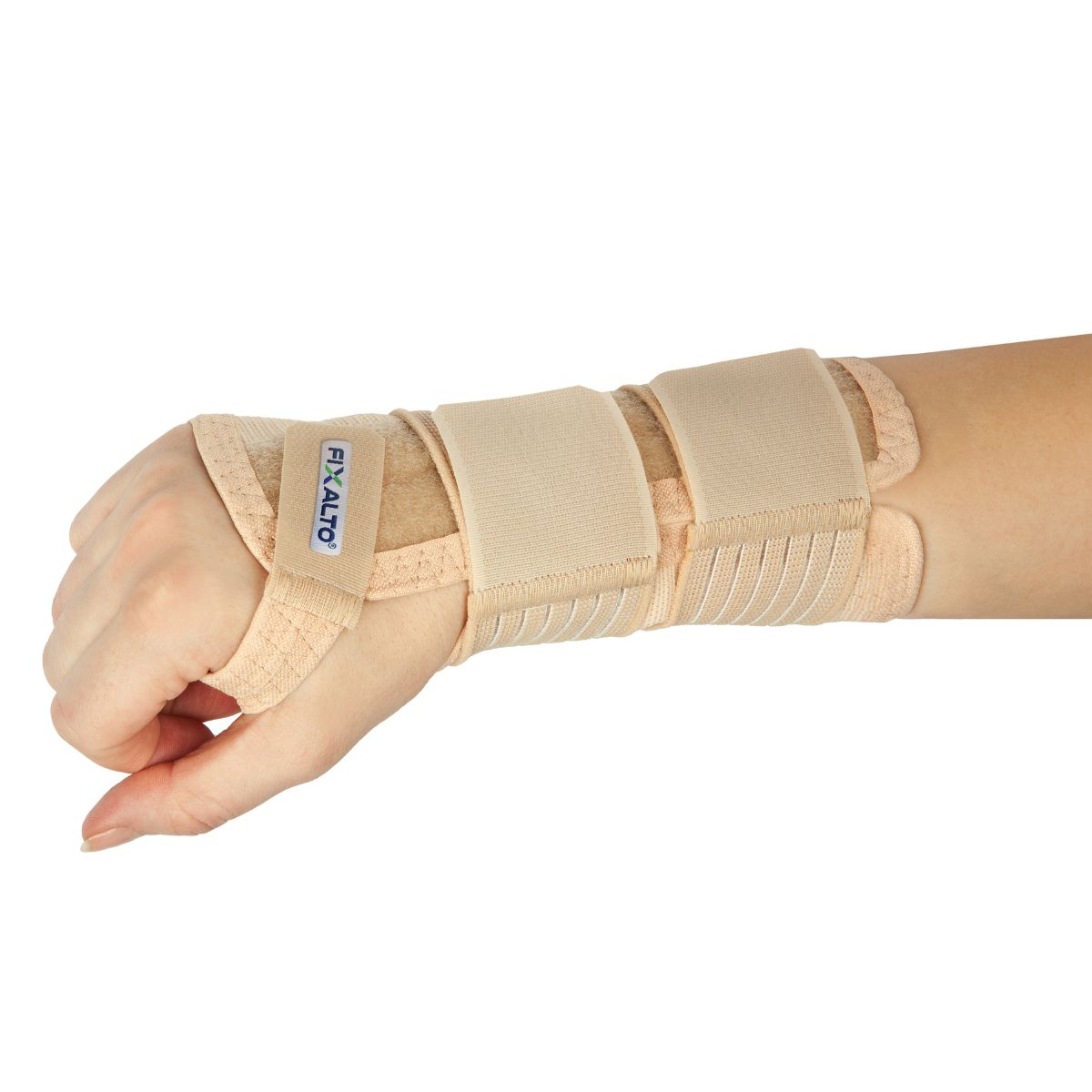 Riešo – plaštakos įtvaras fiksuoja riešą ir plaštaką reikiamoje padėtyje.
